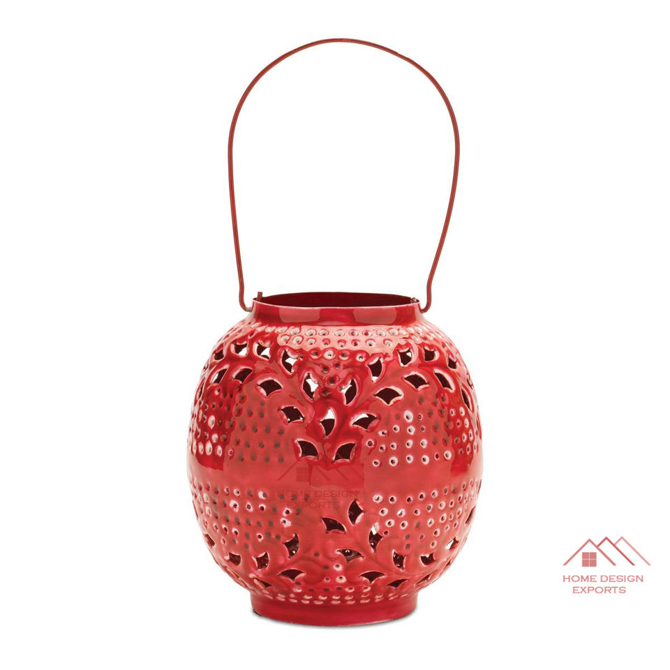 Red Enamel Finished Christmas Lantern Candle Holder Home And Garden Decor Candle Lantern