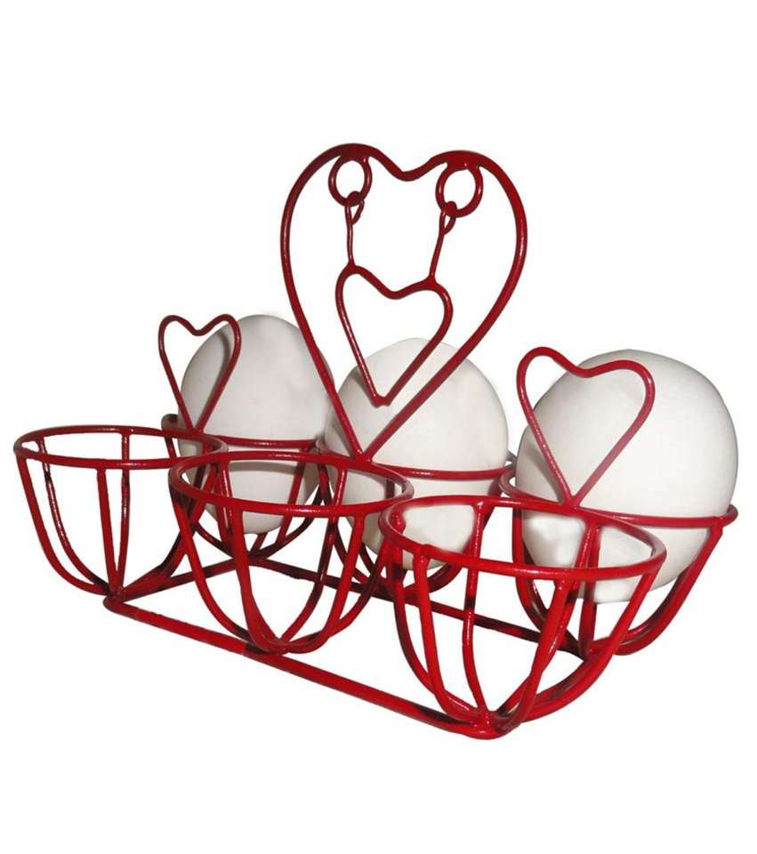 Red Finish Iron Sustainable Multifunction Egg Holder for Rustic Kitchen Home Dining Table Restaurant Decorative Storage