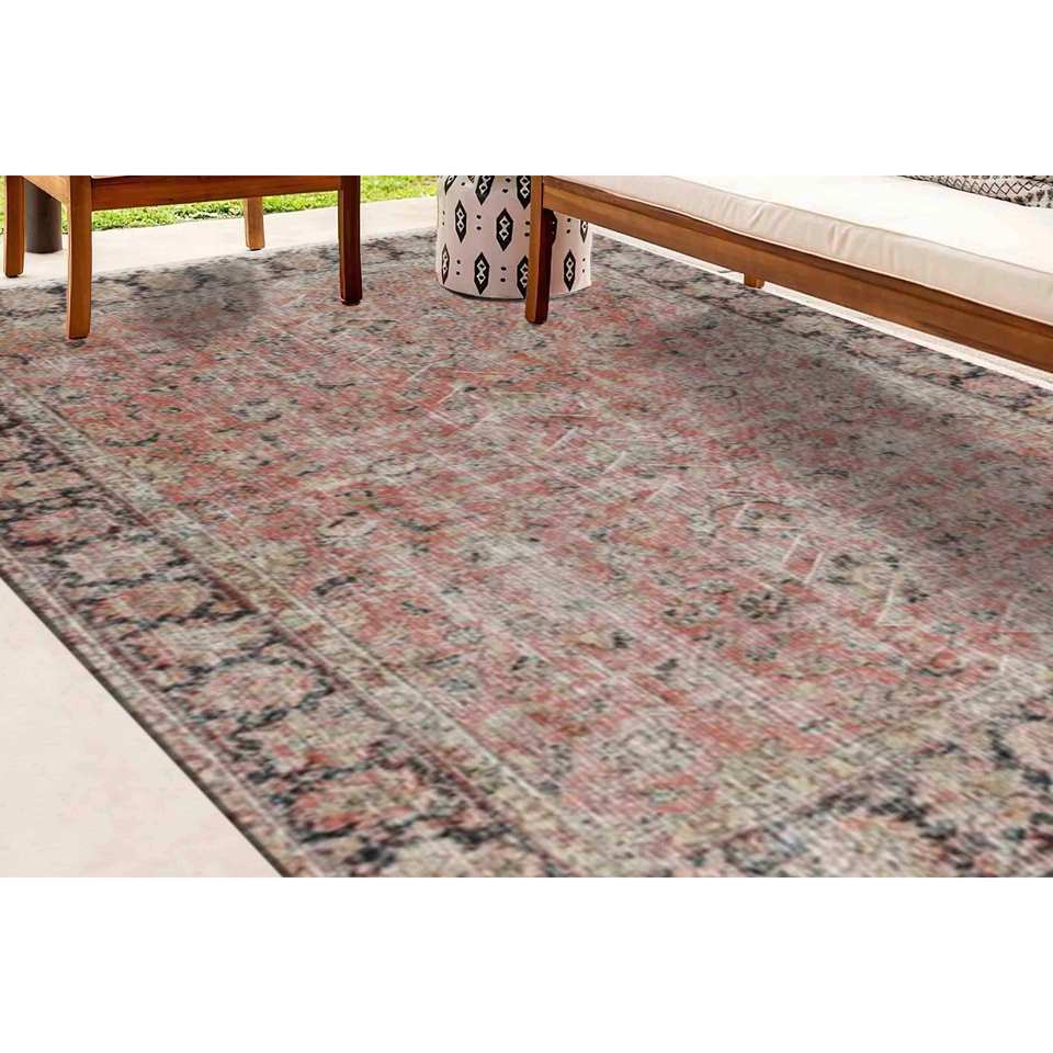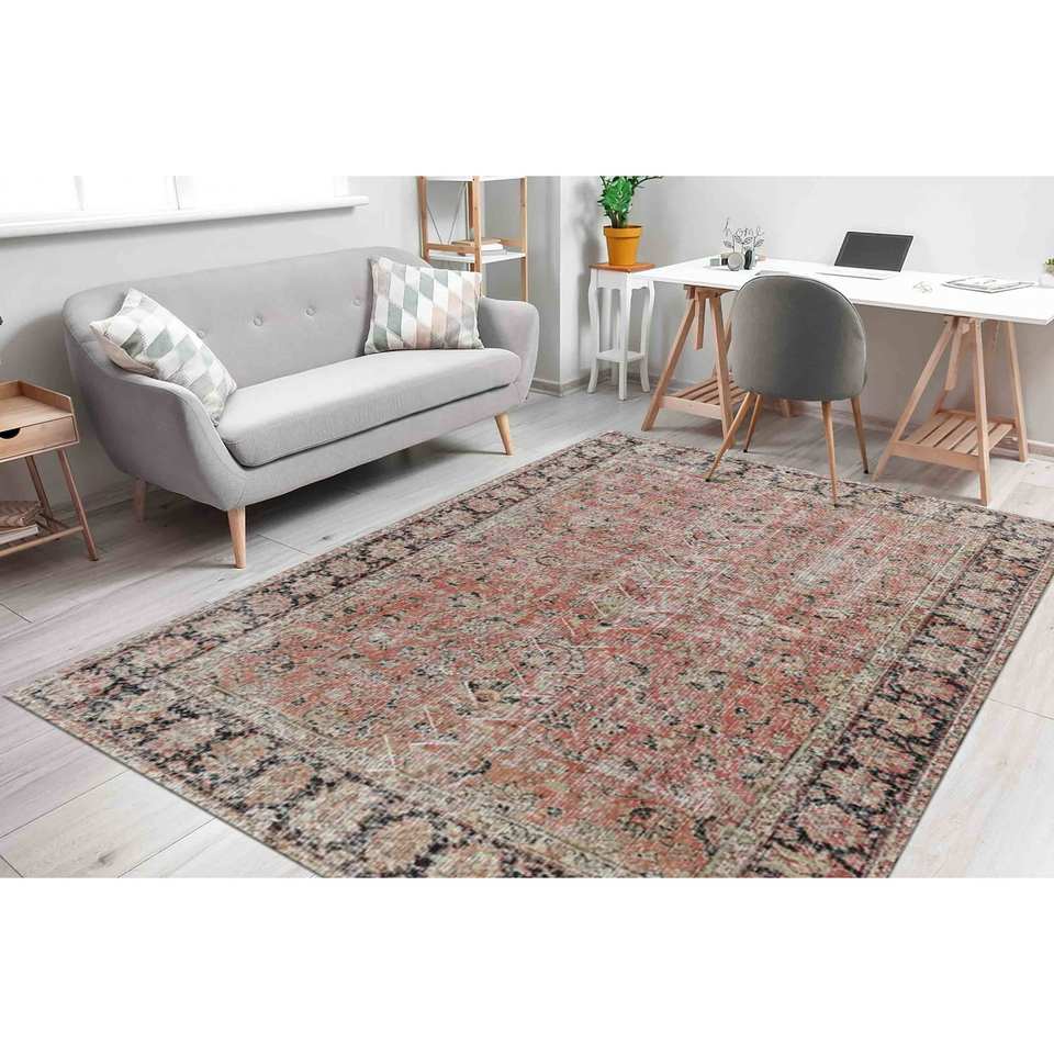 Red Floral Turkish Rug: Antique Oushak Design, Soft Print,Nonwoven Soft Rug