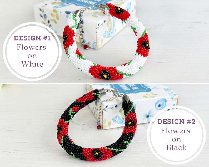 Red Flower Seed Bead Sterling Silver Charm Adjustable Bracelet Beaded Flowers Jewelry Statement for Women Anniversary Gift
