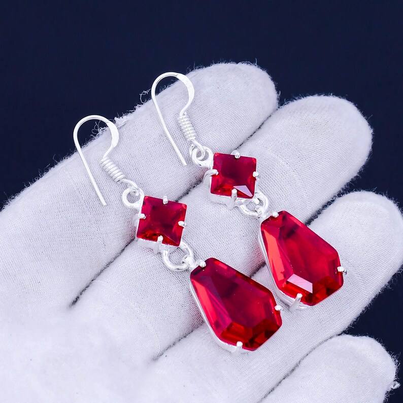 Red Garnet 925 Sterling Silver Drop Earrings Handmade Dangle Jewelry Women Earrings Wholesale