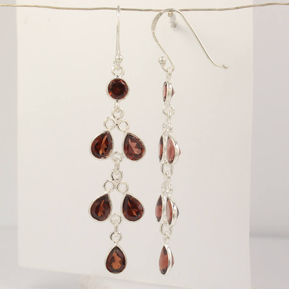 Red Garnet Drop Earrings Trending Natural 6.5 cm Long 925 Sterling Silver Round and Pear Brilliant Cut Drop Earrings for Her