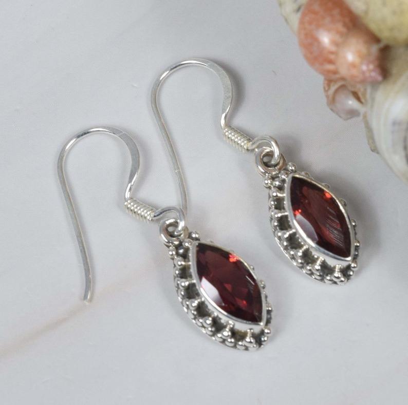 Red Garnet Earrings 925 Sterling Silver Gemstone Earring Marquise Shape Handmade Jewelry Designer Elegant Dangle Gift for Her