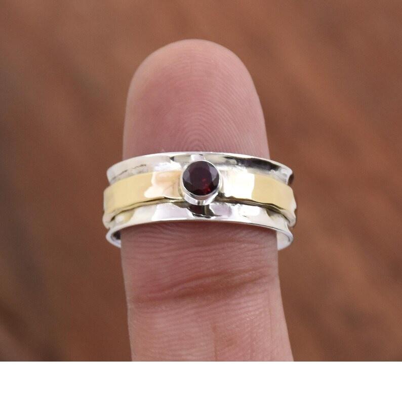 Red Garnet Spinner Ring in Sterling Silver Bohemian Style Christian Meditation Gemstone Ring Gift
