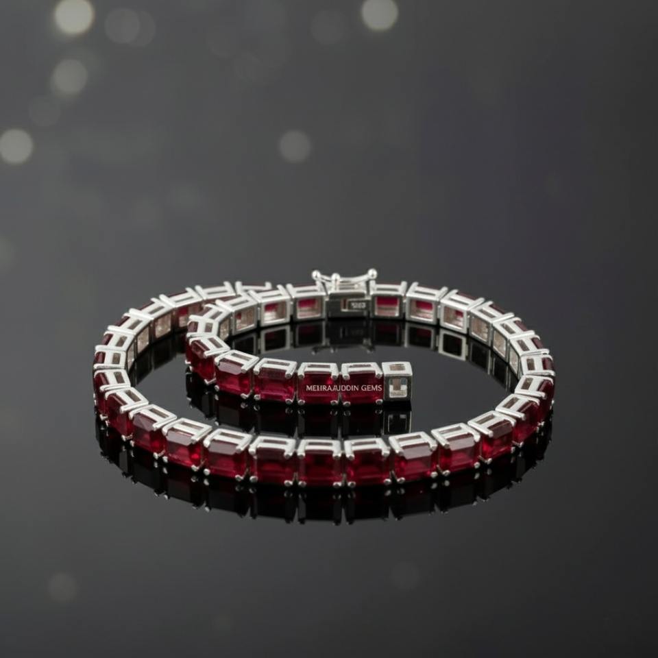 Red Glass-Filled Ruby Silver Tennis Bracelet (Adjustable Rhodium Plated Minimalist Women's Jewelry for Wedding Anniversary Party