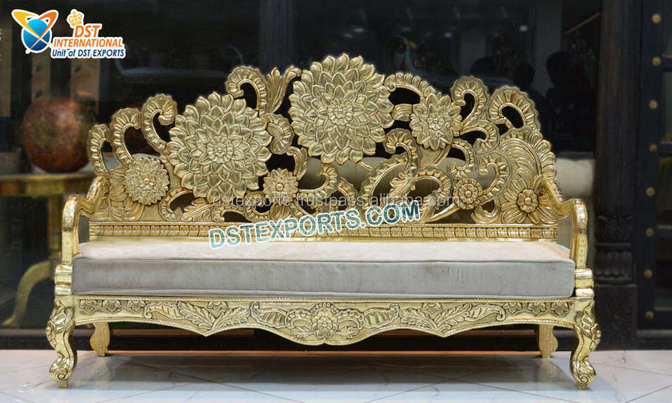 Red Gold Maharaja Wedding Stage Couch