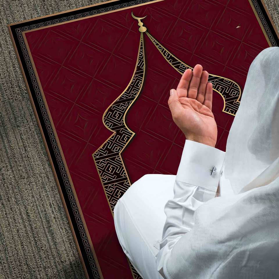 Red & Gold Prayer Rug: Elegant Mosque Decor, Spiritual Gift,With Pile Soft Rug
