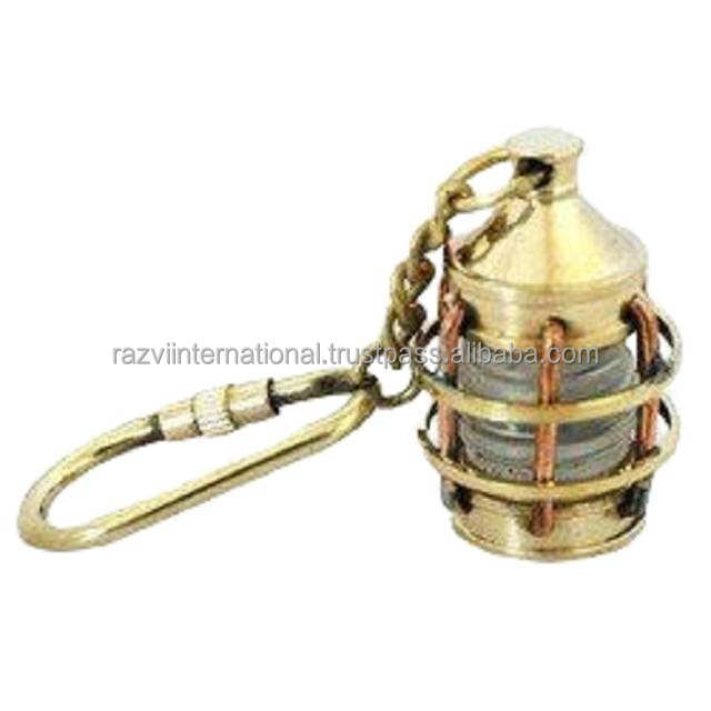 Red & Green Glass Lantern Design Brass Metal Nautical Key Chain Customized Key Chains Smart Key Chain
