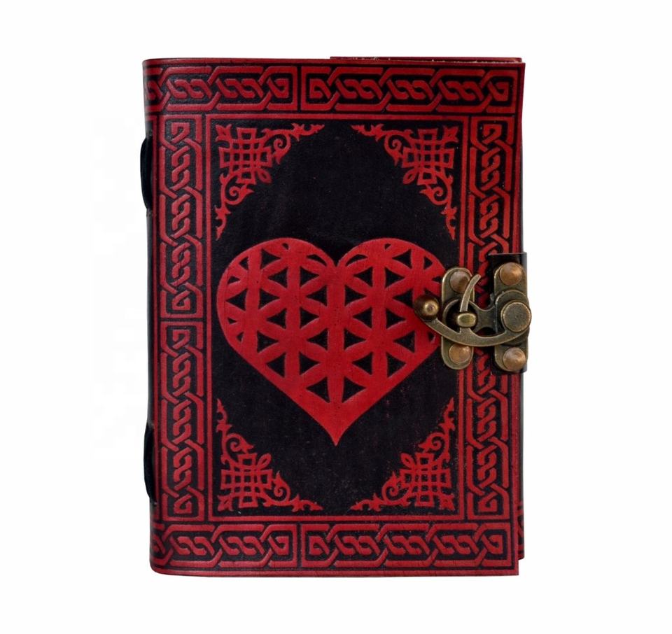 Red Heart Embossed Hardcover 100% Genuine Leather Journal Handmade Diary With Antique Brass C-Lock Blank White Paper A5 Notebook
