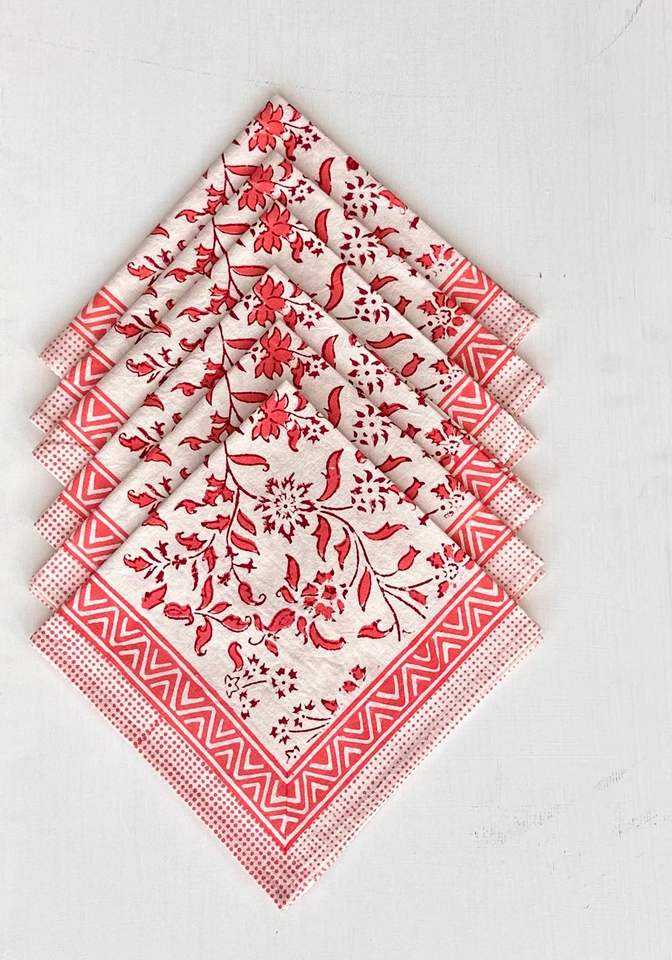 Red Indian Floral Hand Block Printed Cotton Dinner Napkins Plain Style Fabric Table Cover Wedding Events Home Parties Christmas