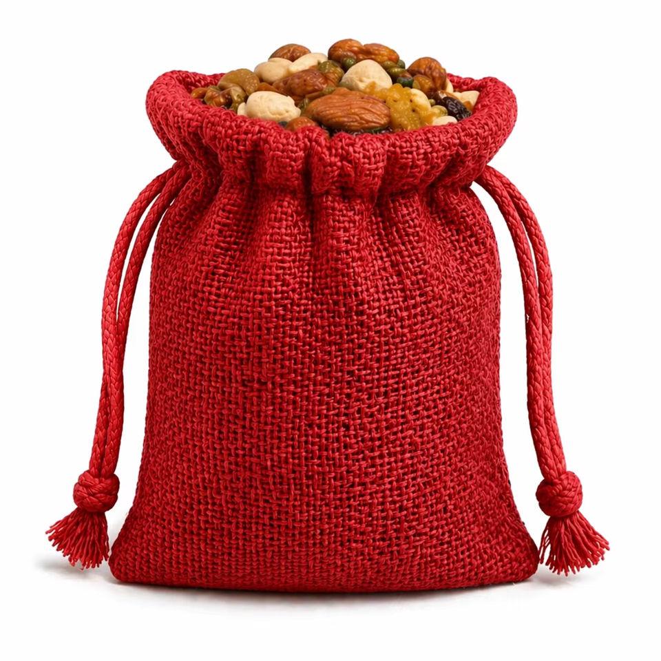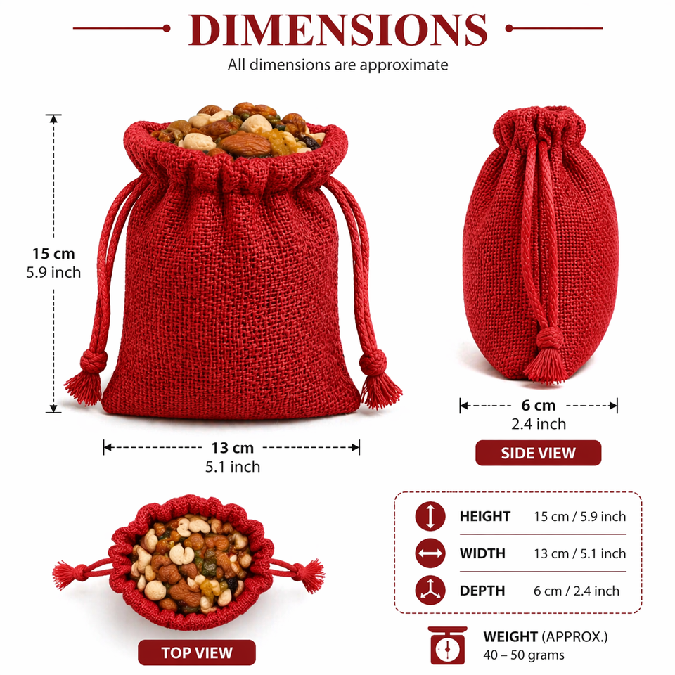 Red Jute Linen Drawstring Pouch Multipurpose Tool Storage Bag Eco-Friendly Reusable 10x14cm Dry Fruits Grocery Packing Made