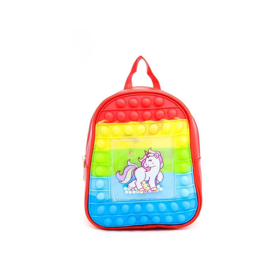 Red Kids Backpack P70822 Fashionable Anti-Theft Waterproof Oxford Material with USB Candy Pattern Nylon Lining Zipper Closure