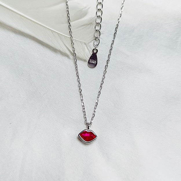Red Lip Pendant Necklace Romantic Lip Shape Sterling Silver Opal Charm Trendy Fashion Jewelry Women Girls Wedding Rhodium