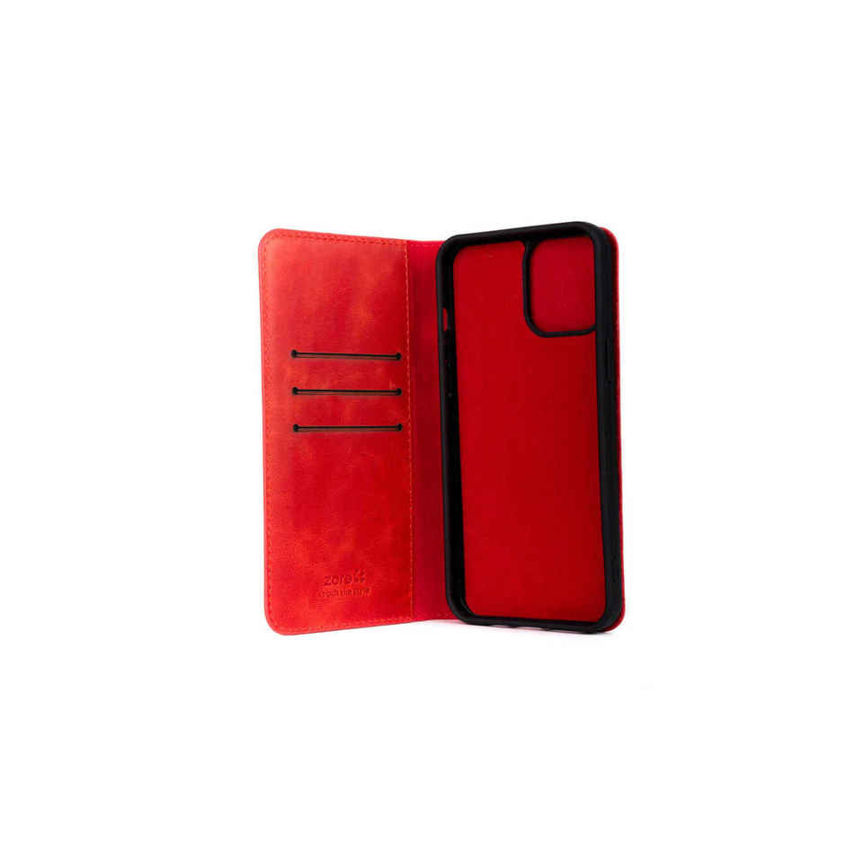 "Red Luxury Genuine Leather & PC Multi-Slot Folio Cover Case for iPhone 12 Pro Max-Retail Packaging"