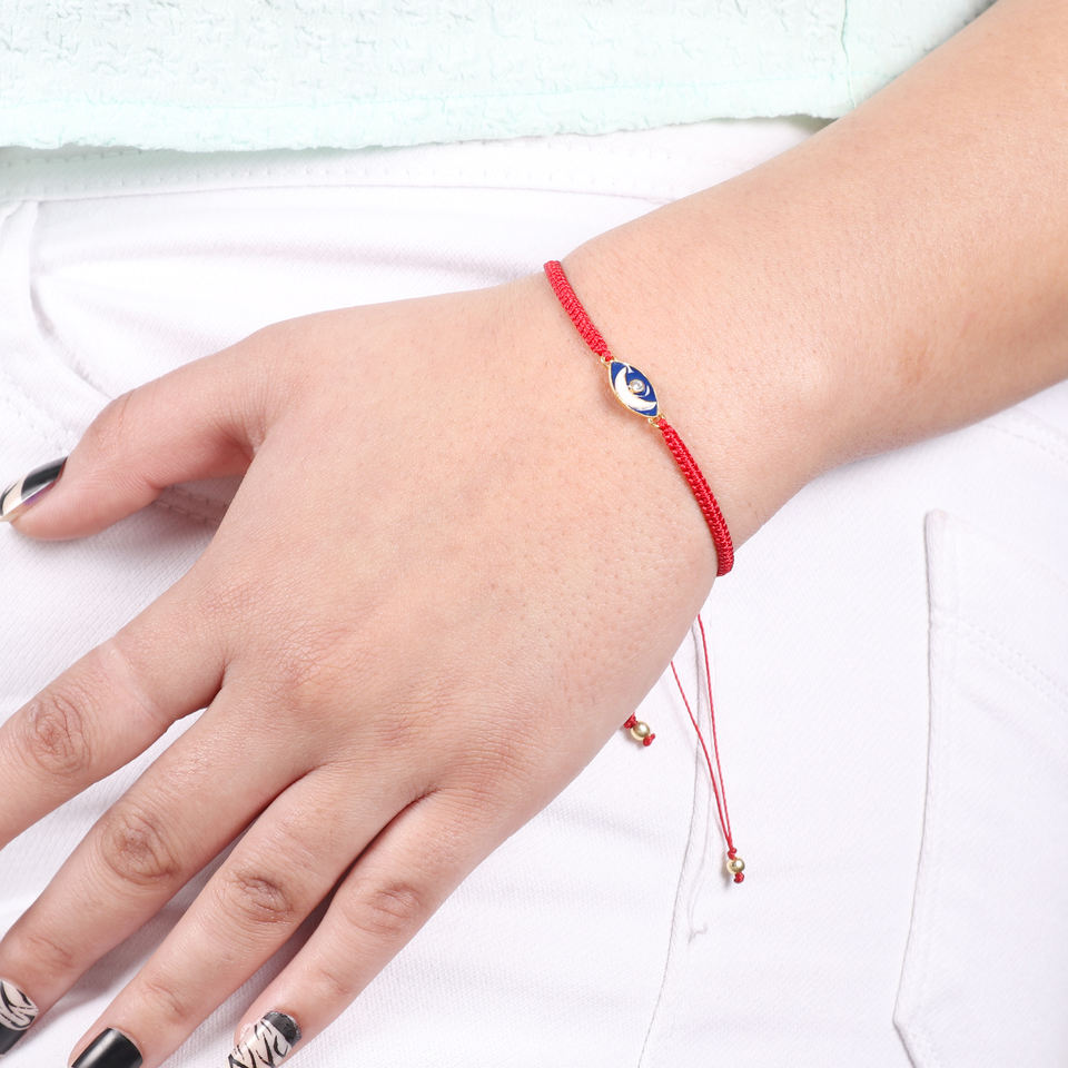 Red Macrame Bracelet with Enamel Moon Charm 925 Sterling Silver and 18K Gold Plating Beaded Style for Party or Gift