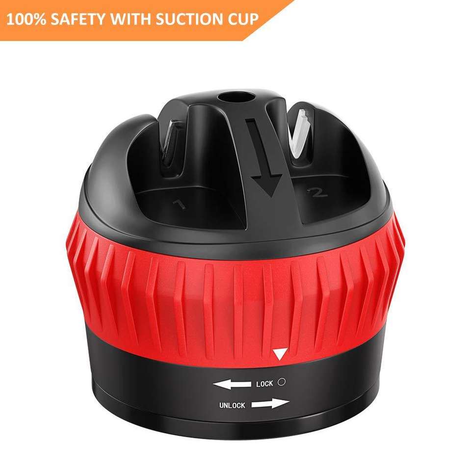 Red Manual Knife Sharpener Multi Grit Durable Kitchen Gadget Set Compact Design For Home Use