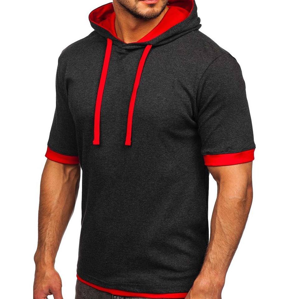 Red Men Custom Logo Men Casual Loose Short Sleeve Hoodies T Shirts Red Drawstring Hooded T-Shirt for Summer