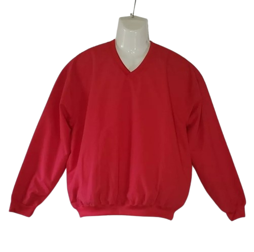 Red Men's Sport Windshell V-Neck Pullover Jacket with Stand Collar Canvas Fabric Embroidery Windproof & Waterproof
