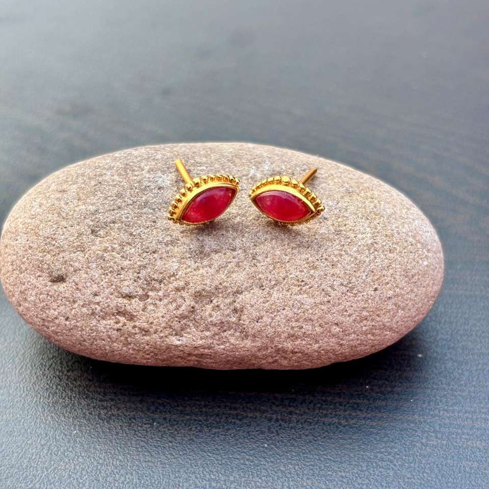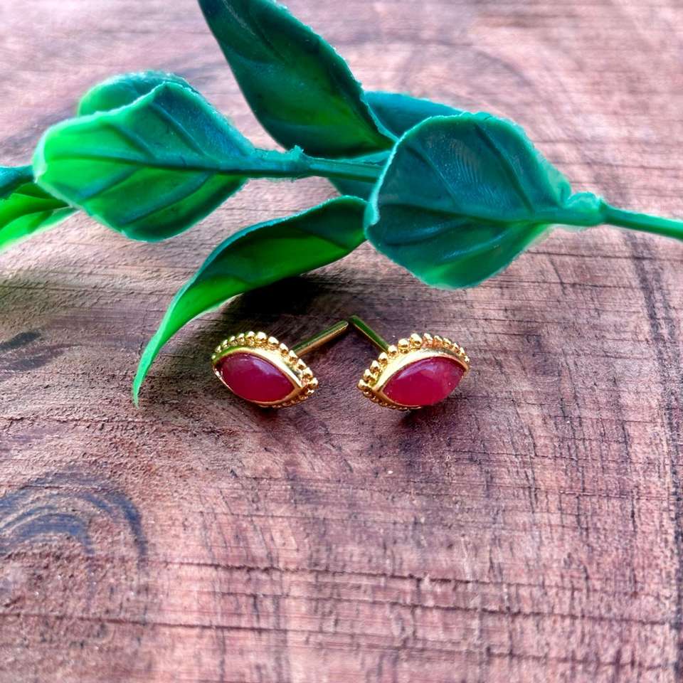 Red Onyx Stud Earrings Natural Gemstone Jewelry in 925 Sterling Silver Customizable Studs with Sterling Silver