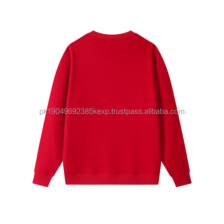 Red Oversized Crew Neck Sweatshirts for Couples 400 Grams Fleece-Lined Solid and Print Pattern Casual Long Style for Winter