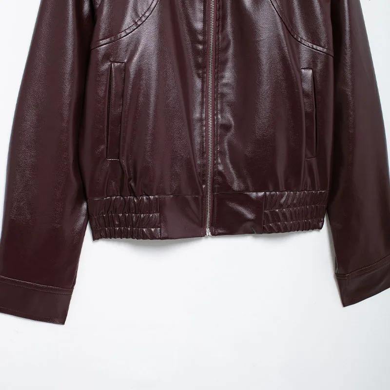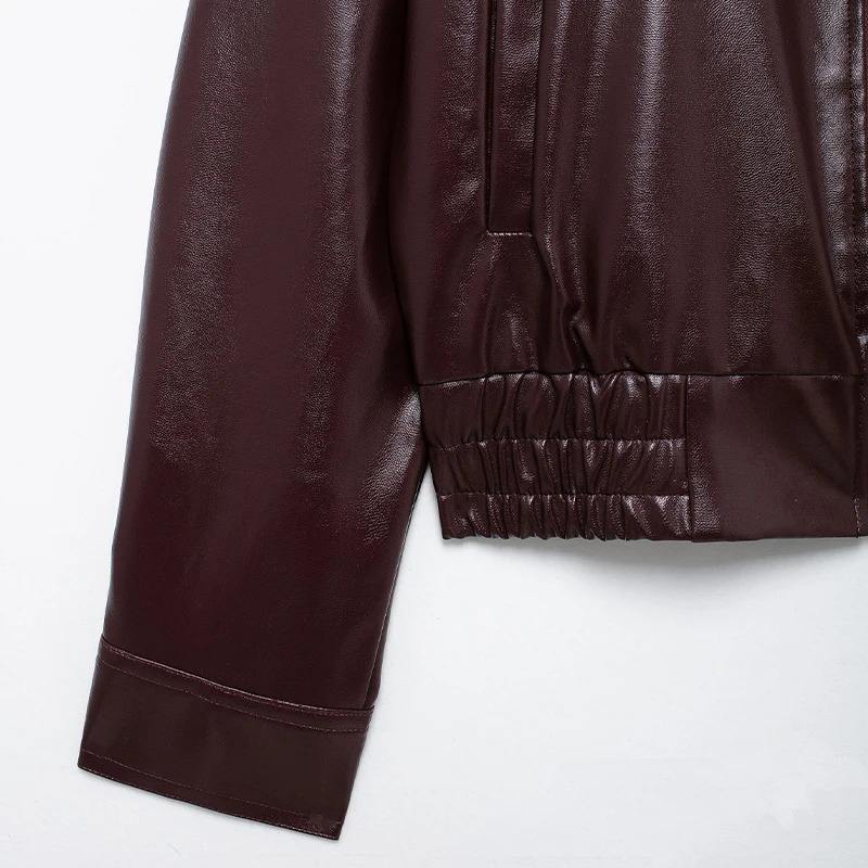 Red PU Faux Leather Jacket Women fashion Casual Biker Jackets Outwear Female Tops spring and autumn Black Leather Jacket Coat