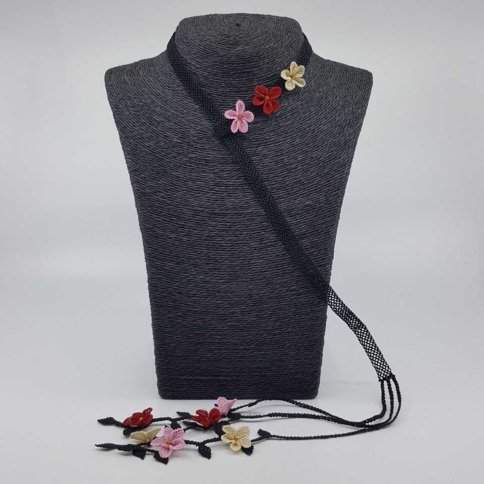 Red-Pink Wild Flower Scarf Necklace Needle Lace Fashion Pendant Necklaces