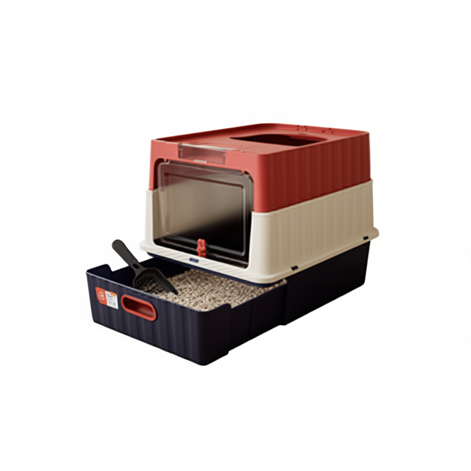 Red Plastic Drawer Cat Litter Box 100L Manual For Cats With Removable Tray