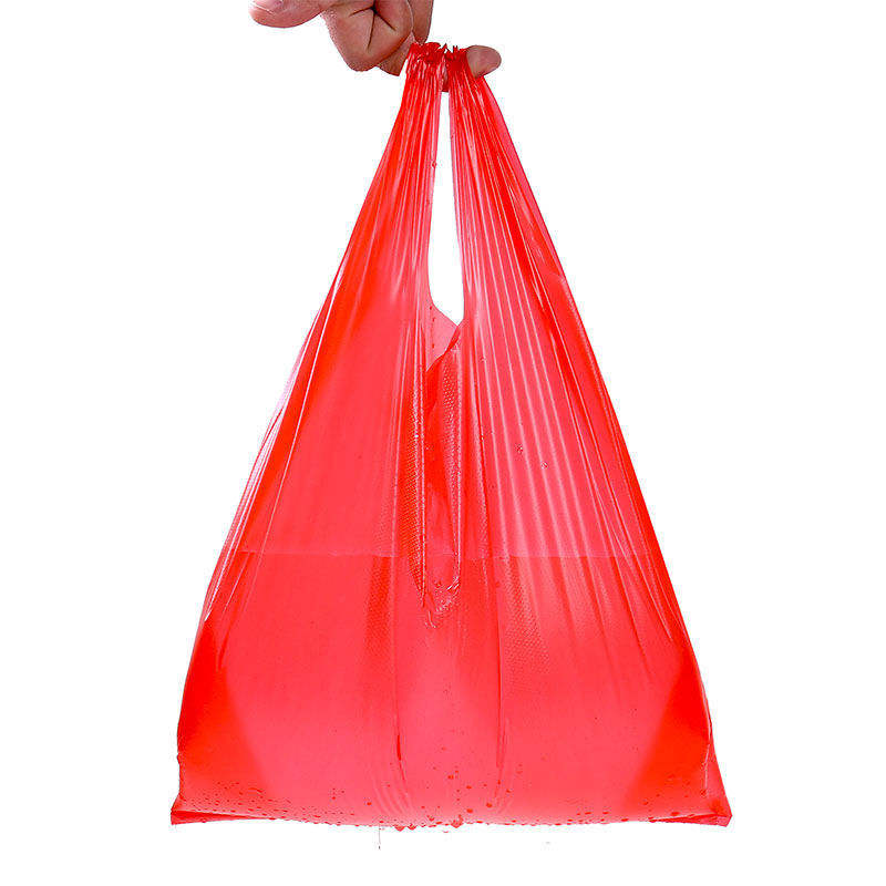 Red Plastic T-Shirt Bags Heavy Duty Recycled And New Materials Polyethylene For Business Shopping Trash Bag Use