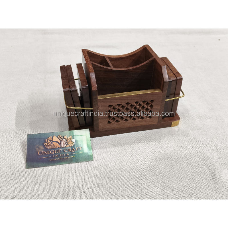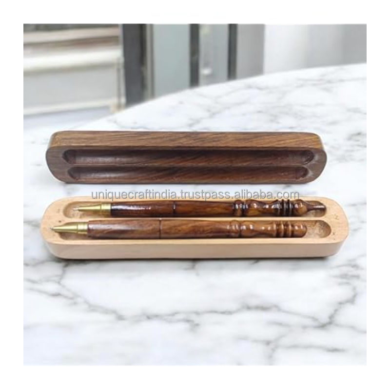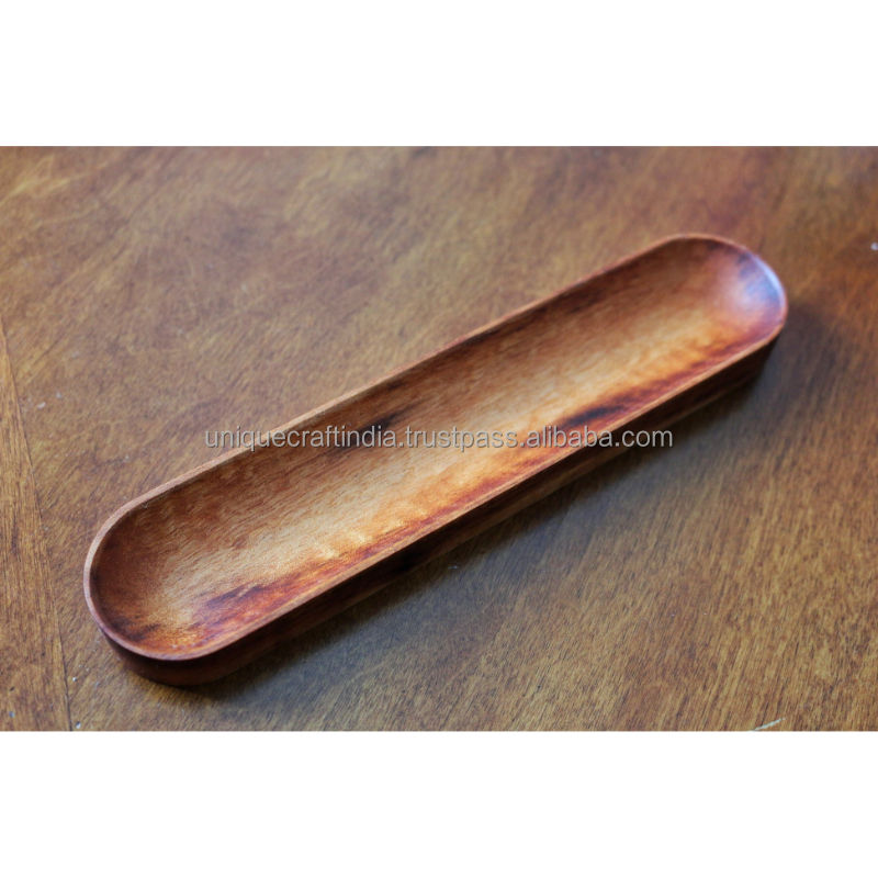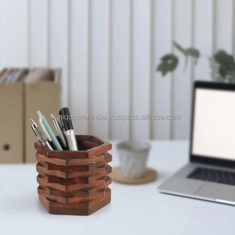 Red Polished Wooden Pen Tray Handmade Desk Organizer for Office Workspace and Home Decor