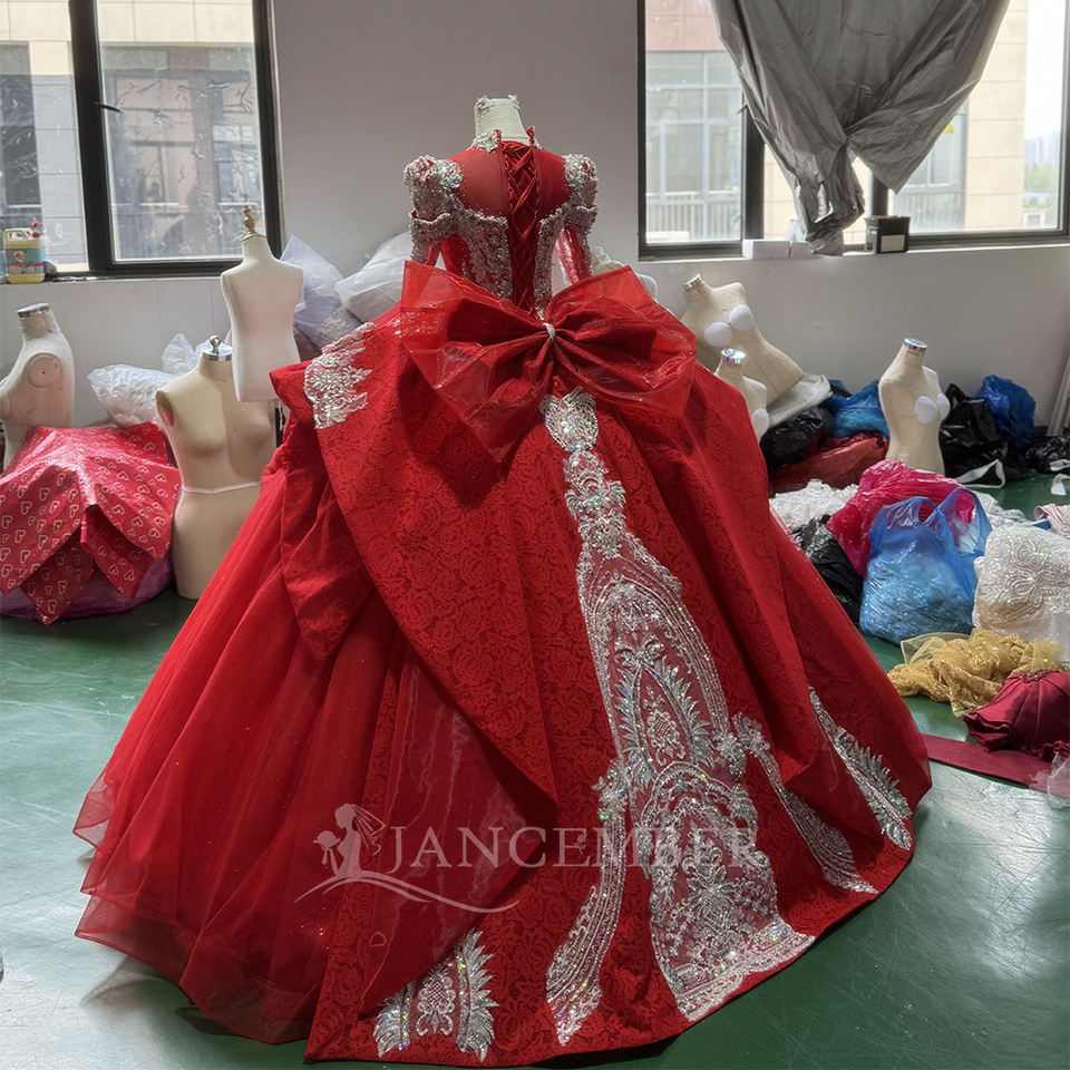 Red Quinceanera Ball Gown Dress Sweetheart Neckline Backless Chapel Train Floor-Length Sequined Beading Lace Evening Party Dress