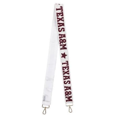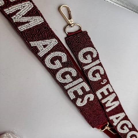 Red Raiders Clear Cotton Base Glass Beaded Handmade Personalized Rectangular Shape Sports Purse Strap.