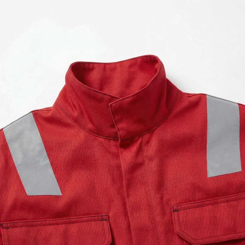 Red Reflective Work Jacket with Chest & Sleeve Reflective Tape Heavy Duty Industrial Utility Jacket OEM / Private Label