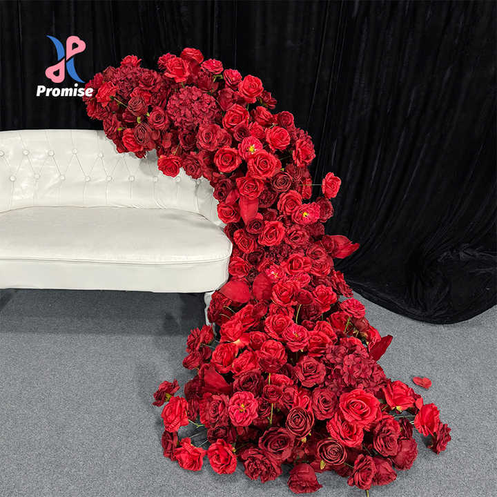 Red Roses Customized Size and Colors Artificial Flower Runner for Sofa Decoration & Wedding Supplies Decoration