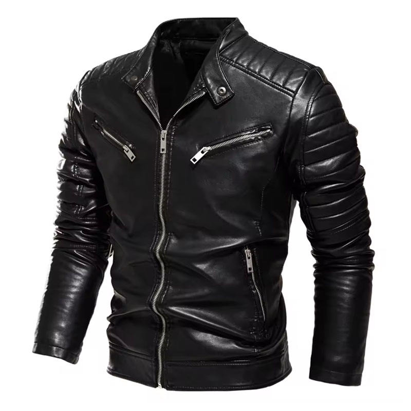 Red Slim-Fit PU Leather Jacket Men's Fashion Biker Coat with Zipper Pockets Wholesale Rate Streetwear jacket for men