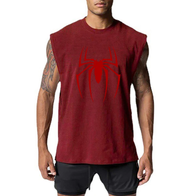 Red Spider Printed Loose Sport Tank Tops Gym Fitness Bodybuilding Sleeveless Vests Mesh Breathable Quick Dry Mens Workout Shirt