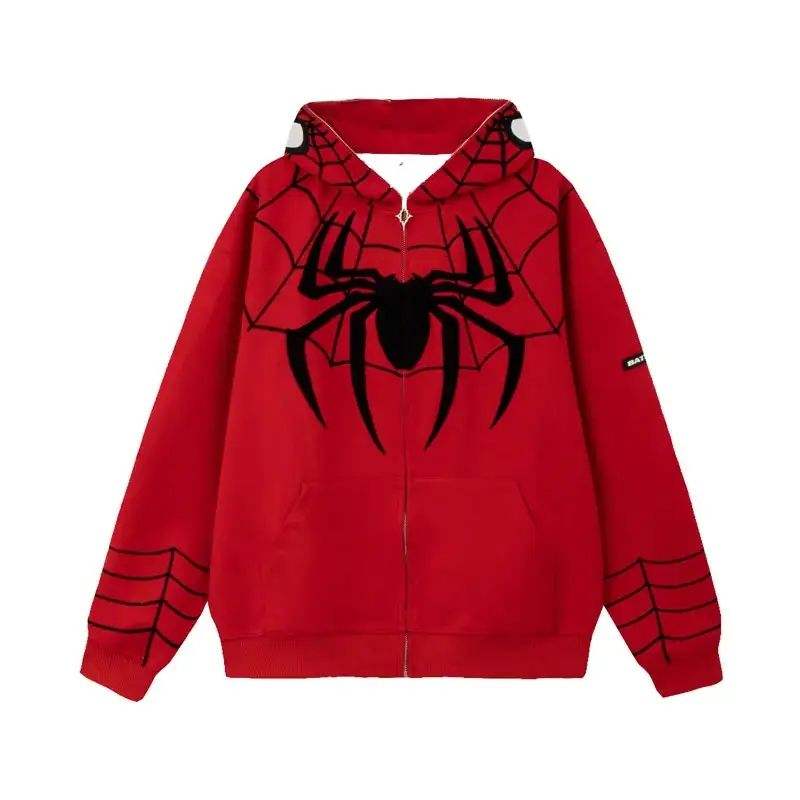 Red Spider Web Hoodie Mens Casual Zip Up Sweatshirt Stylish Graphic Design Hooded Jacket for Winter and Streetwear