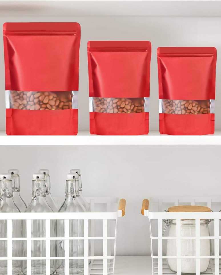 Red Handmade Stand-up Frosted Resealable Composite Materials Food Packaging Bags Windows for Baking Cookies Coffee Beans Party