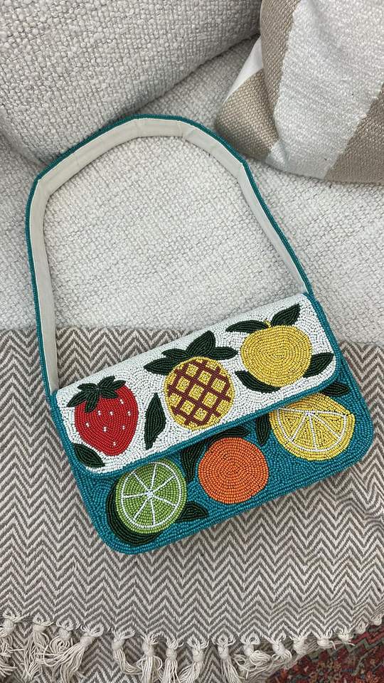 Red Strawberry Beaded Shoulder Bag Glass Beads Handbag Fruit Purse Summer Beach Flap Clutch Custom Ladies Party Evening Tote Bag