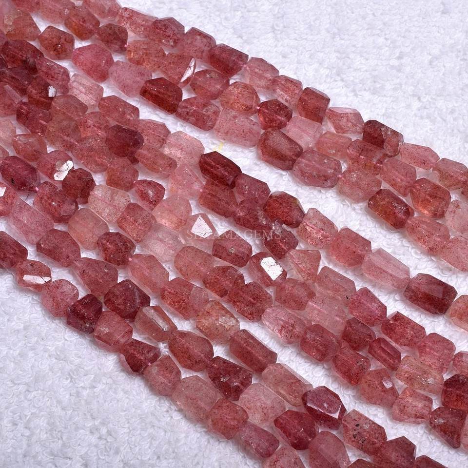 Red Strawberry Quartz Faceted Tumble Nuggets 6-9mm Black Beads 16 Inches Smooth Loosely Drilled Faceted Jewelry Stone Beads