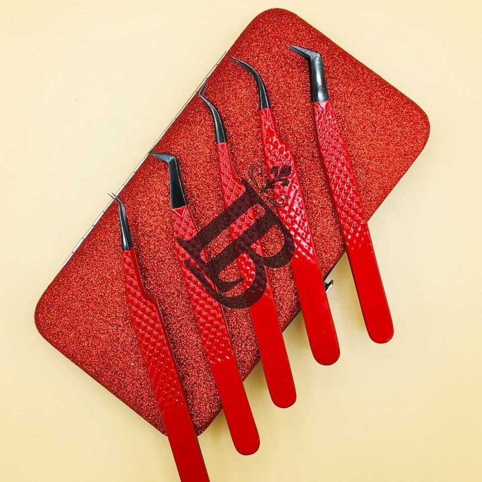 Red Tweezers Mink Eyelash Extension Tweezers Black Plasma Tip 45 Degree Tweezers With Case Logo Offer Sample Available Fiber tip