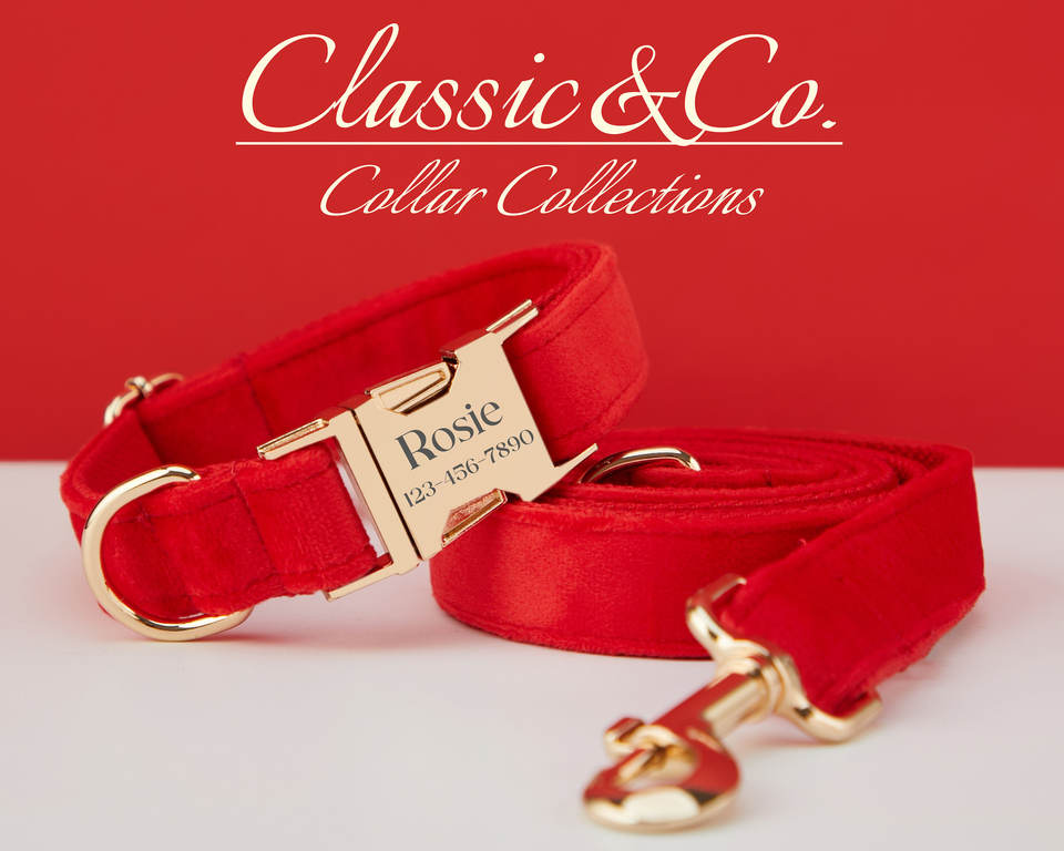 Red Veet Personalized Dog Collar Bow Tie Leash Set,Custom Engraved Pet Name Metal Buckle, Birthday Puppy Gift,Free Shipping