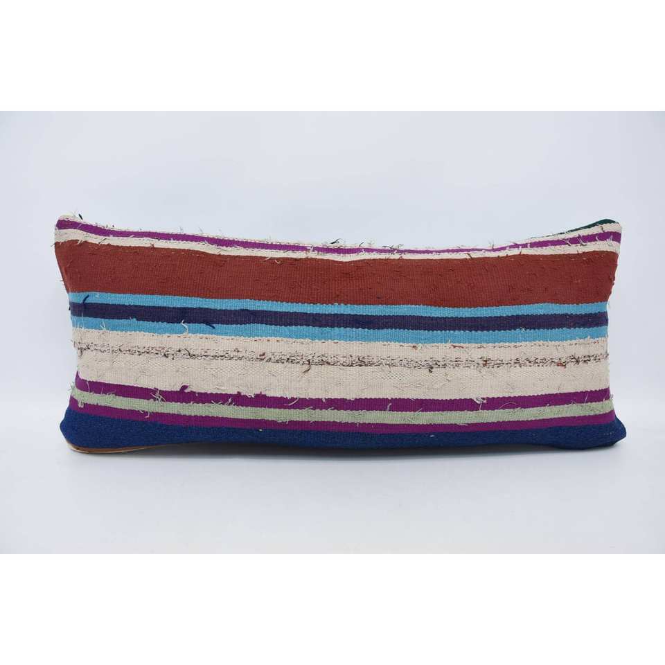 Red Vintage Striped Bohemian Wool Pillow 16x36 Inch Luxury Decorative Accent Cushion for Living Room