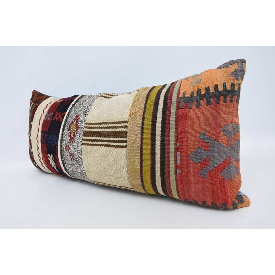 Red Vintage Striped Wool Patchwork Pillow 16x36 Inch Luxury Bohemian Cushion for Living Bedding Woven Decorative Cushion Soft