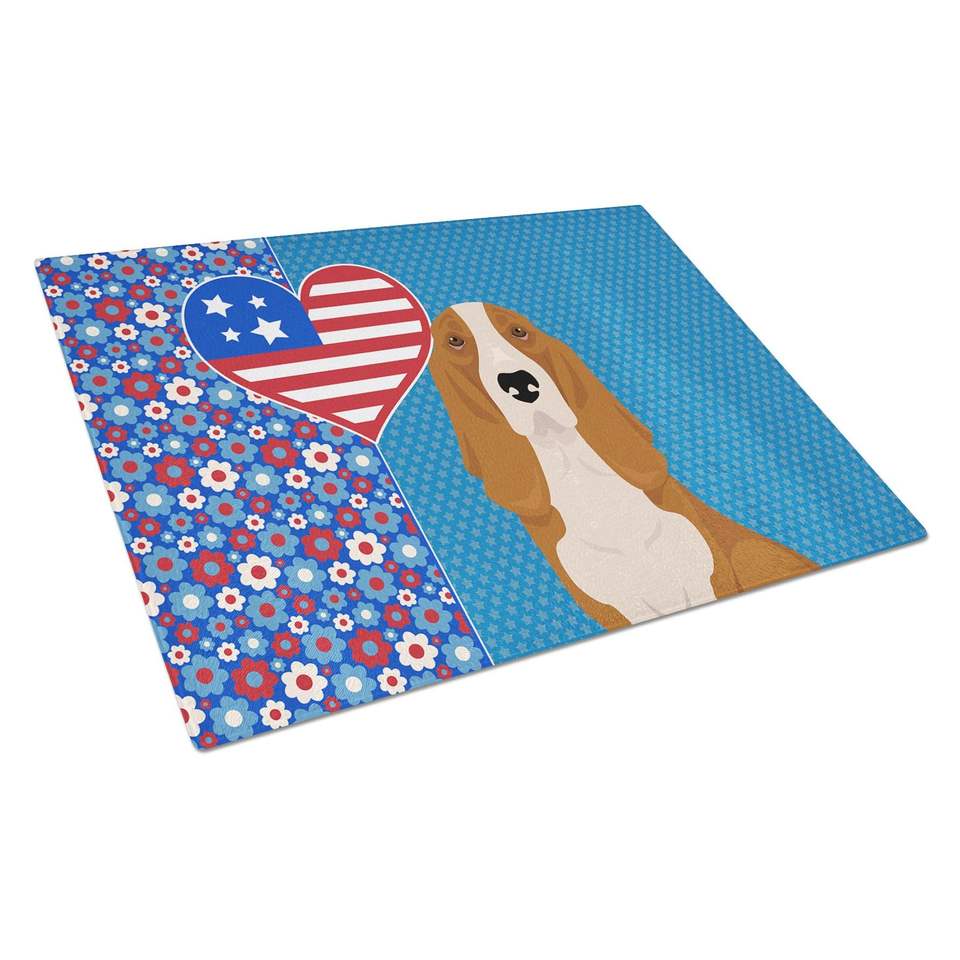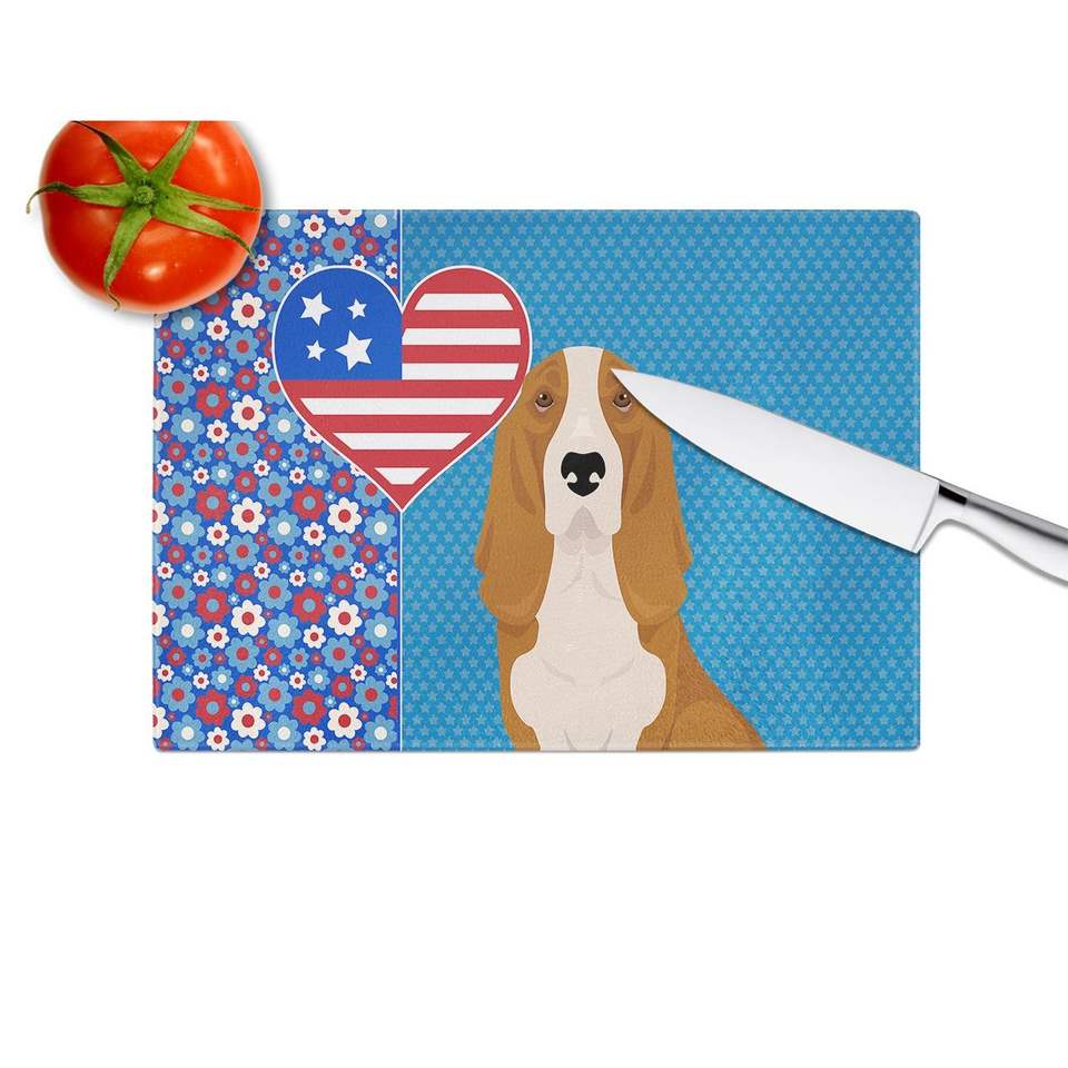 Red White Tricolor Basset Hound USA American Decorative Tempered Glass Cutting Board Large Size Kitchen Serving Board Utensils