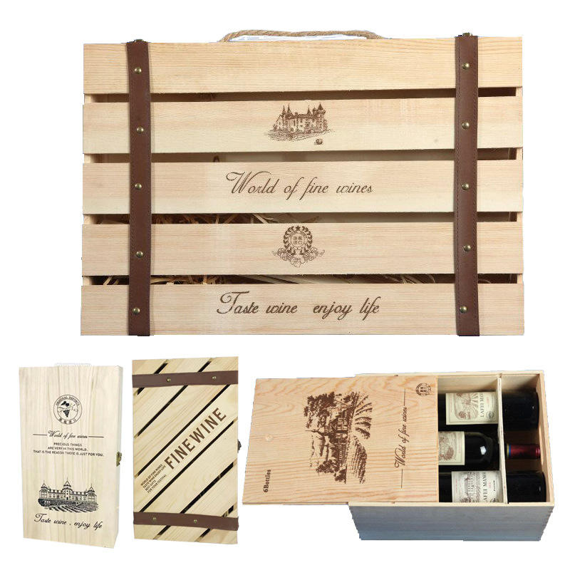 Red Wine Bottle Whisky Gift Set Disposable Wooden Packing Box Custom Logo Special Champagne Flute Wine Can Storage Gift Wrap