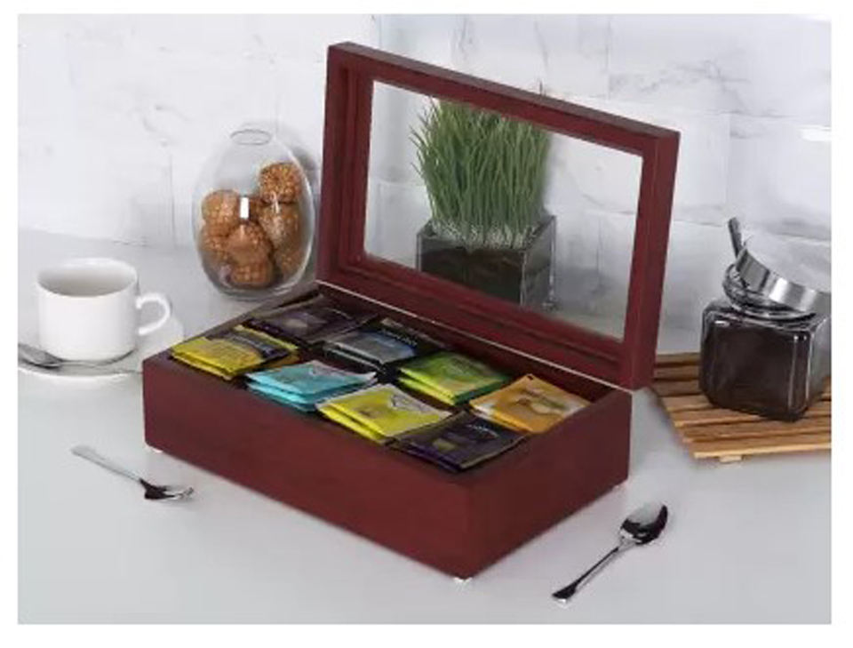 Tea Box Storage Tea Bag Holder 8 Adjustable Tea Chest Compartments