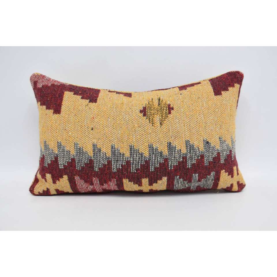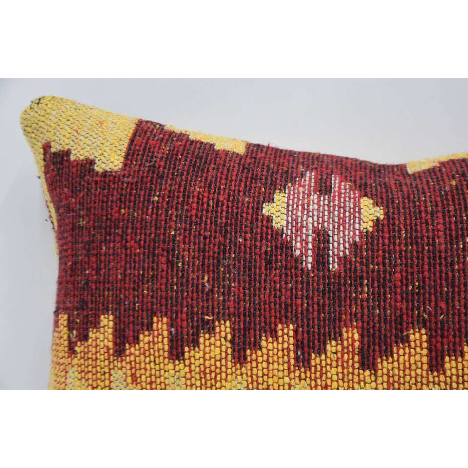 Red Wool Pillow 12x20 Inches Traditional Style with Vintage Floral Geometric Pattern Luxury Woven Design for Living Room