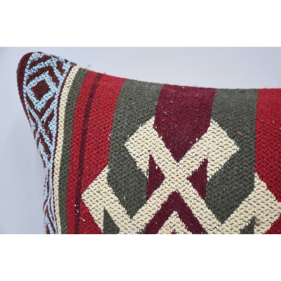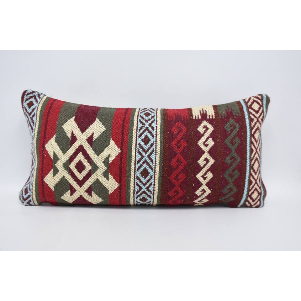 Red Wool Pillow 12x24 Inches Traditional Luxury Style Vintage Geometric Pattern Woven Eco-Friendly Non-Slip Removable Washable