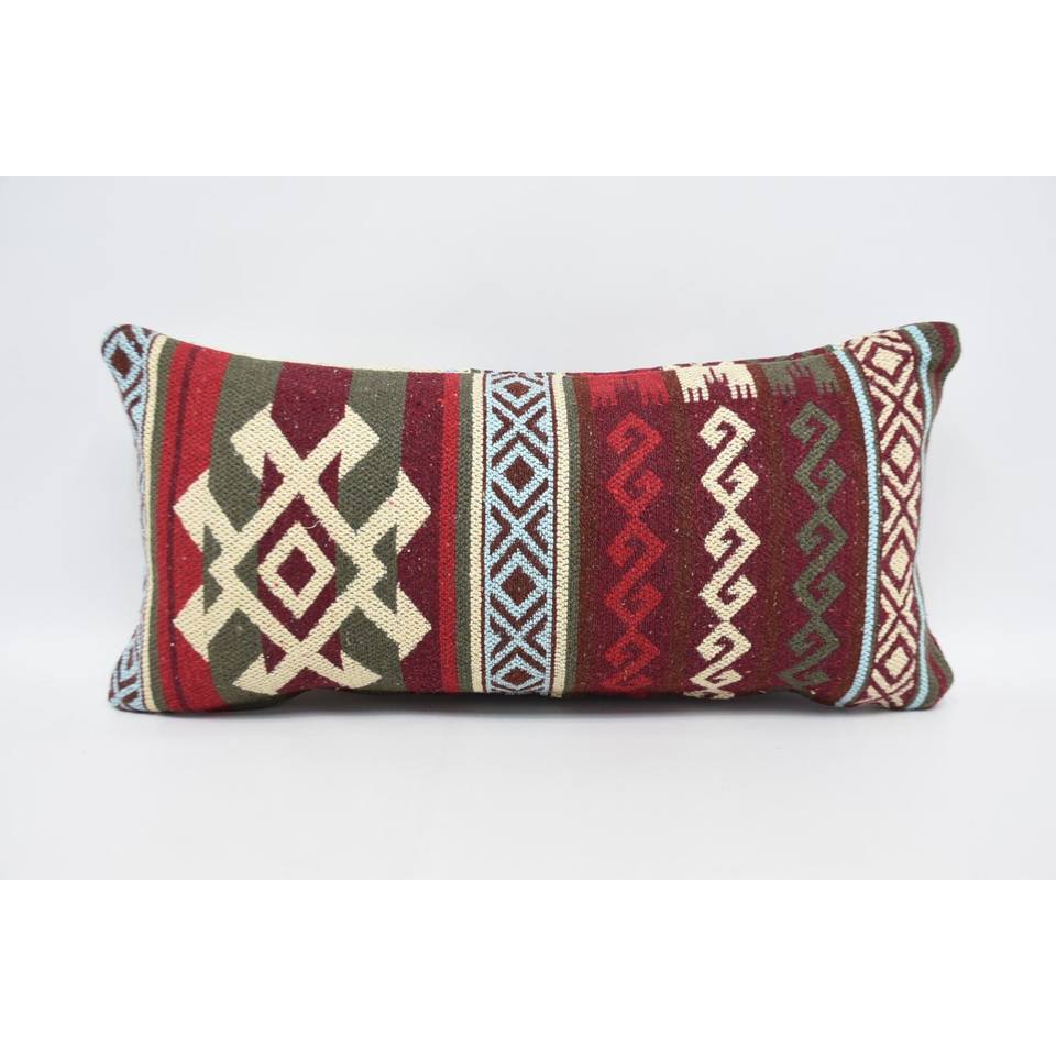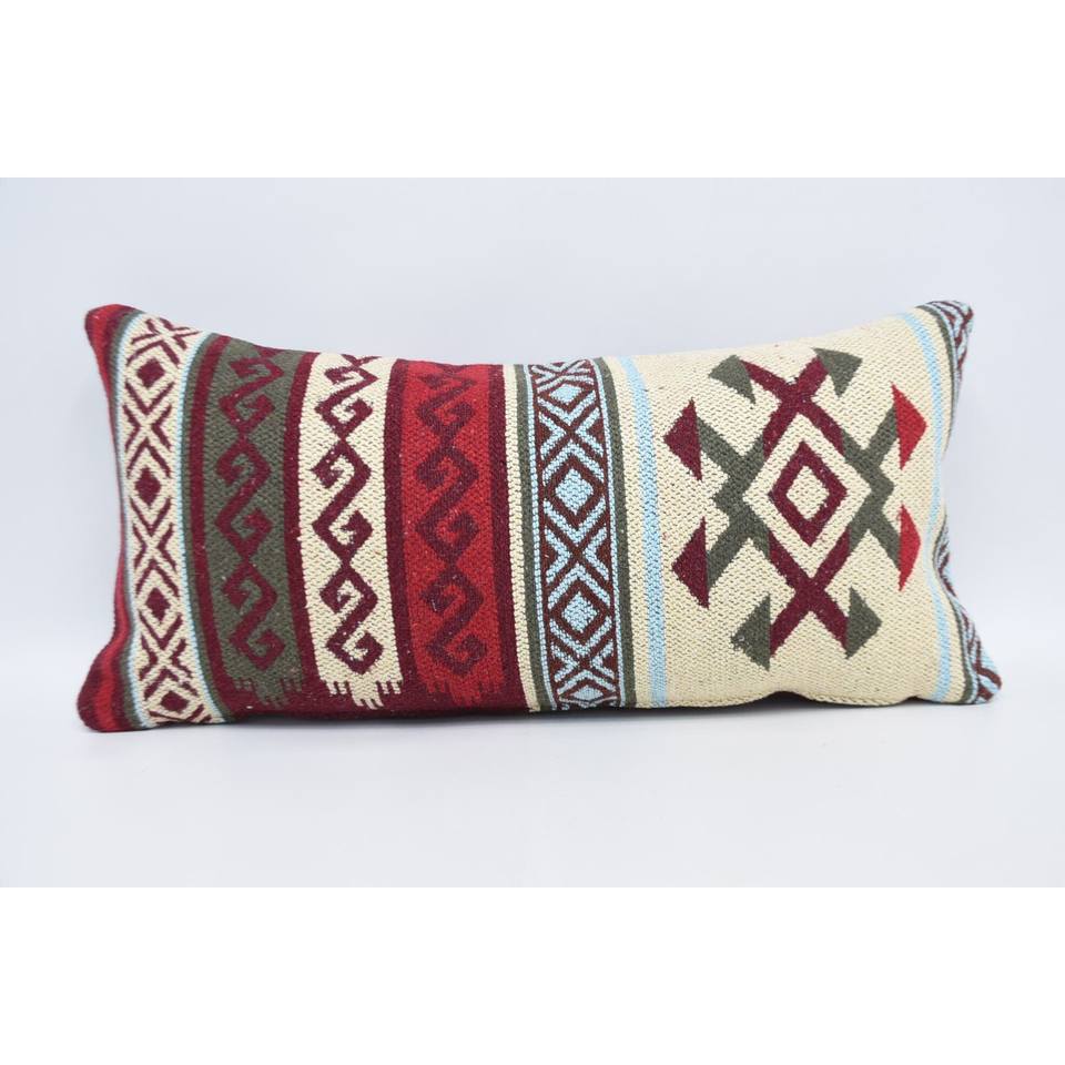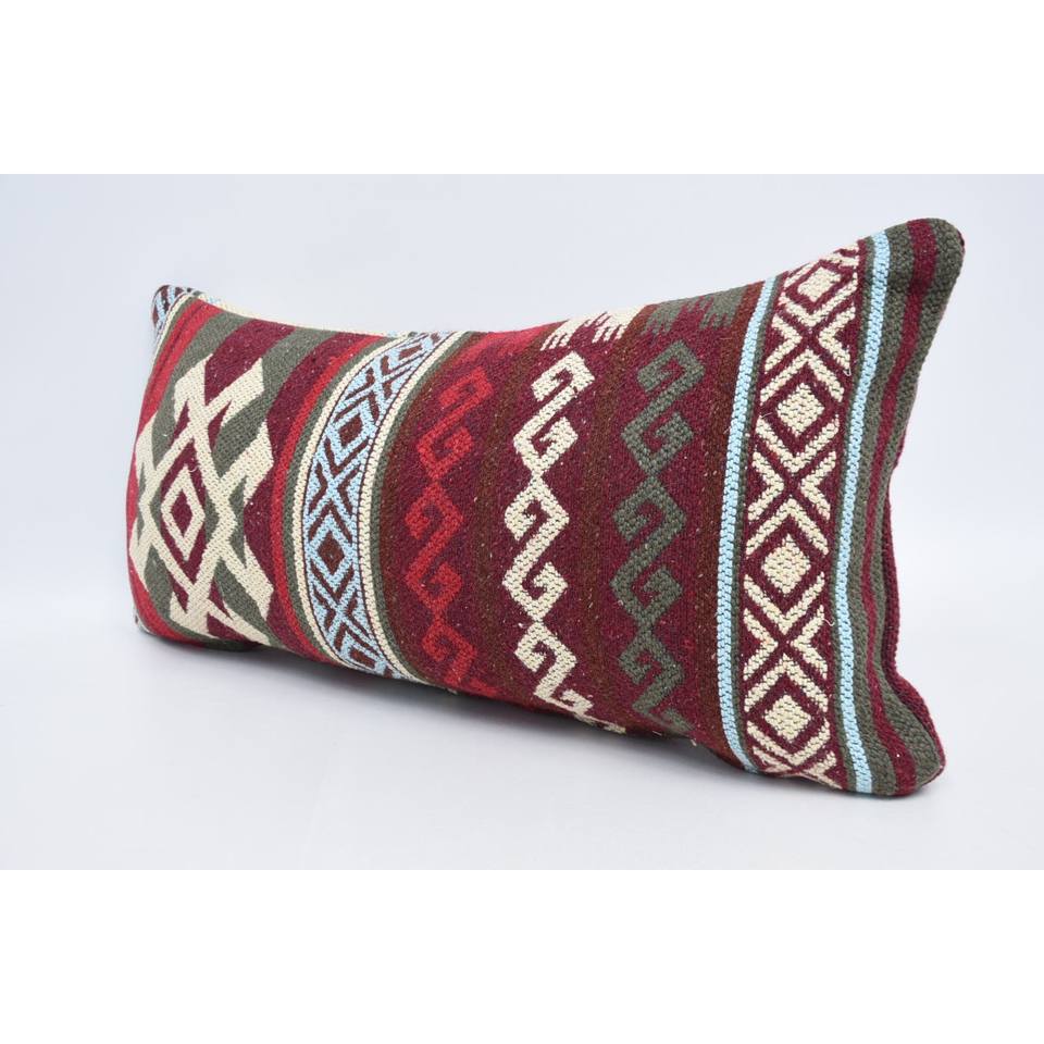 Red Wool Pillow Traditional Geometric Pattern 12x24 Inches Portable Decorative Cushion for Bedding Vintage Style for Christmas