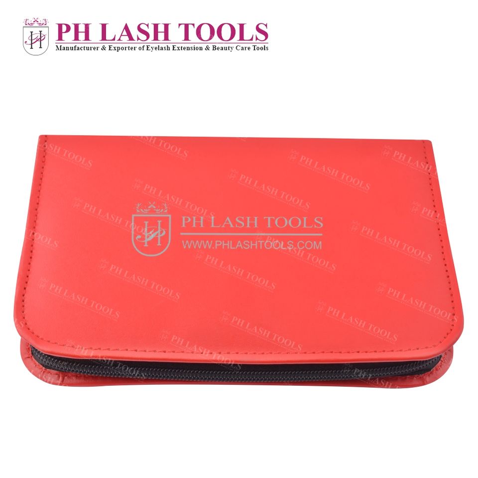 Red Zipper Case Elastic Holding For 8 Tweezers Private Label, Beautiful Elegant Rexine Purse/Case For Your Tweezer Private Label